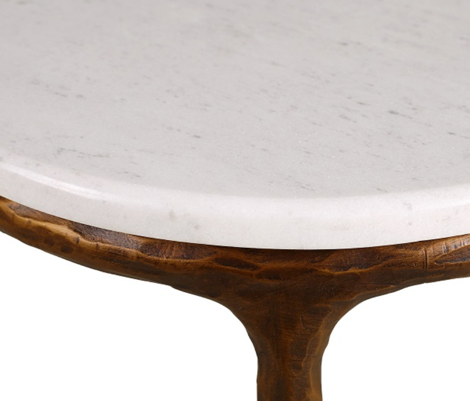 Beistelltisch Marmorplatte organisch + Metallgestell messing