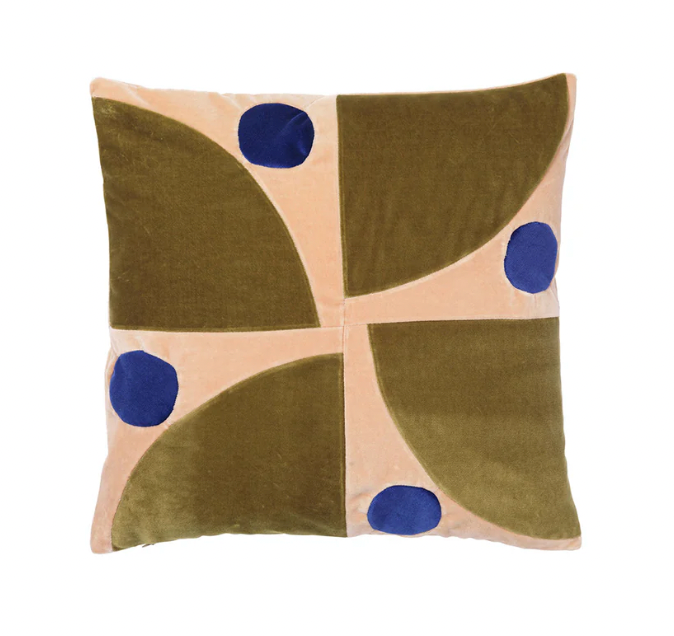 Kissen Samt "Windrad" mit Punkten khaki nude
