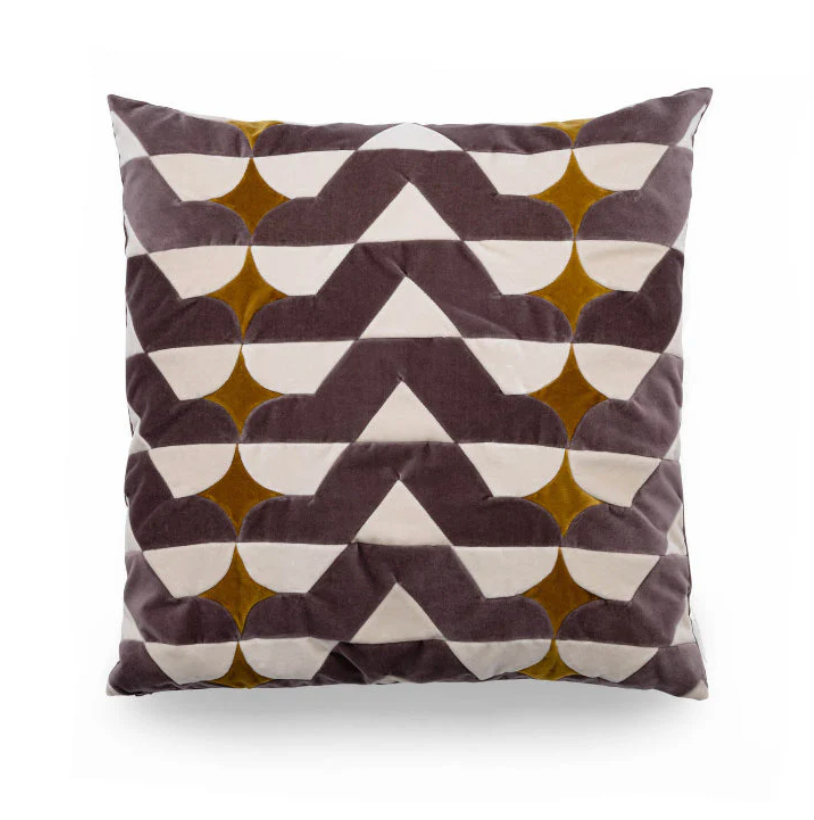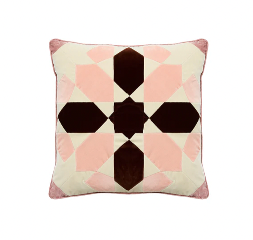 Kissen Samt graphisch Patchwork rosa/ Bordeaux