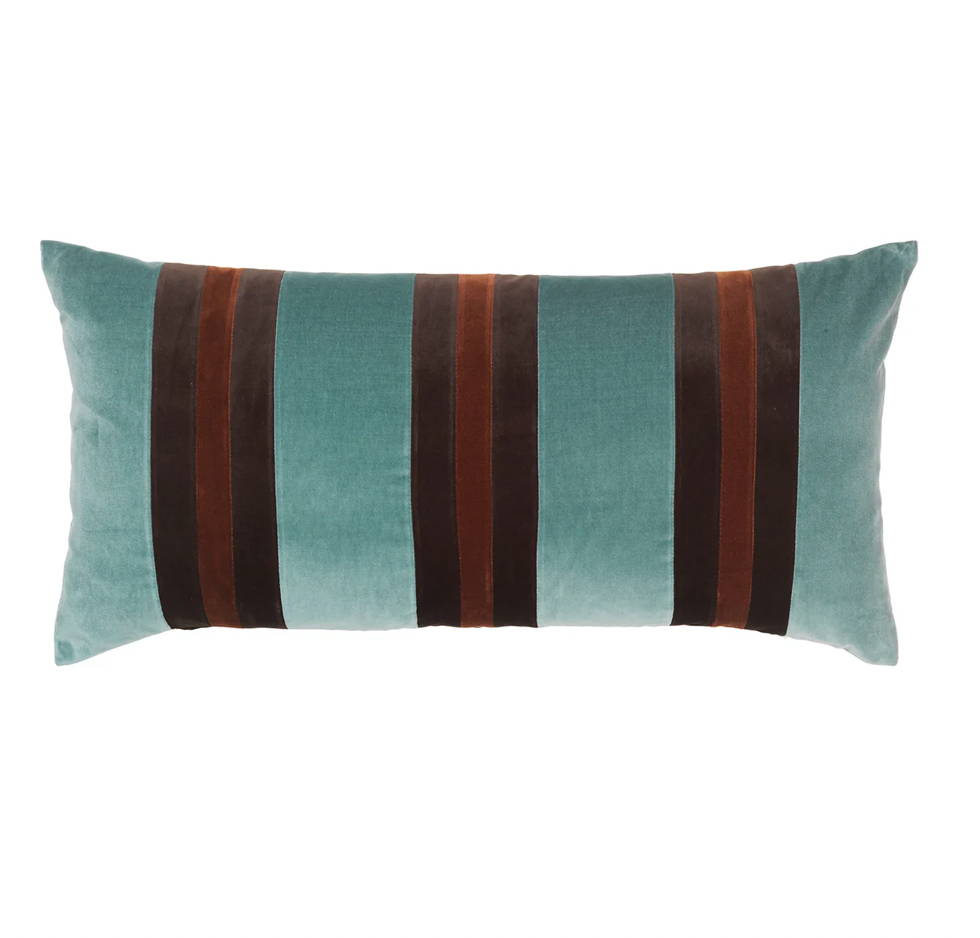 Kissen Samt gestreift lang 40x80cm acqua / braun