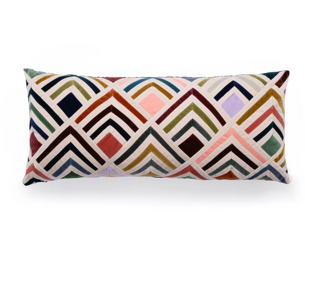 Kissen Samt Patchwork 40x80 Ecken multicolor