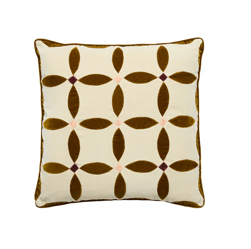 Kissen Samt 40x40, Patchwork Ecken nude/curry