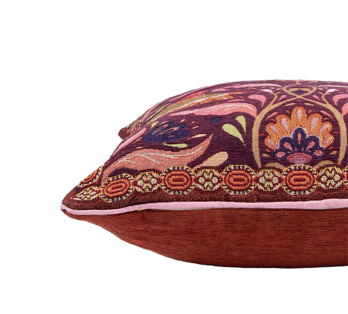 Kissen Ikat Samt 40x60cm bordeaux/ pink / weiß