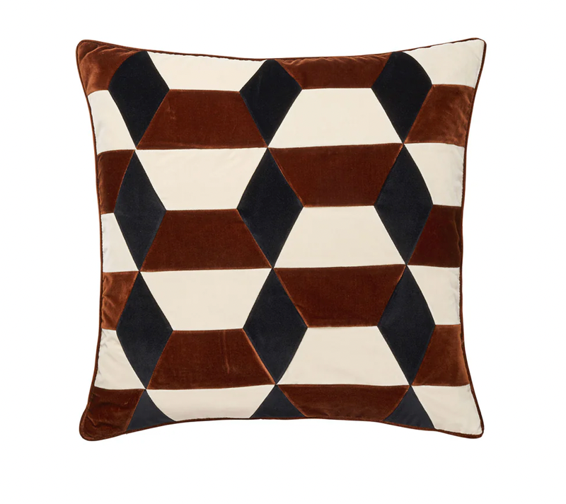 Kissen Samt Patchwork 55x55cm creme/braun/schwarz