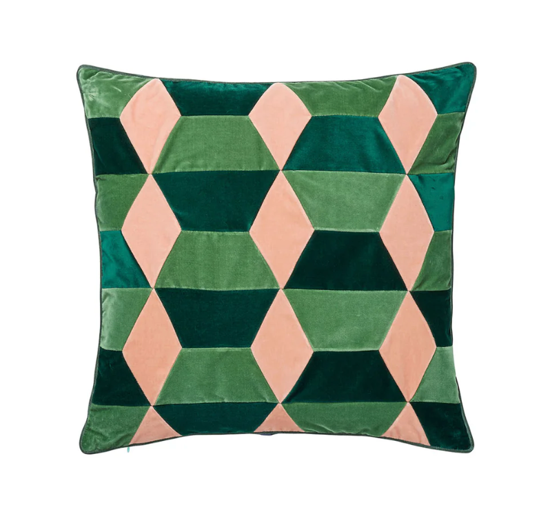 Kissen Samt Patchwork 55x55cm grün/ rosa