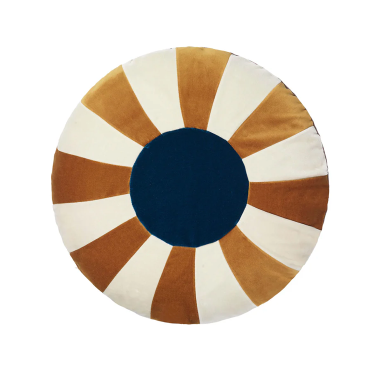 Kissen Samt/ Leinen mit schwarz/weiss gestreifter Borte