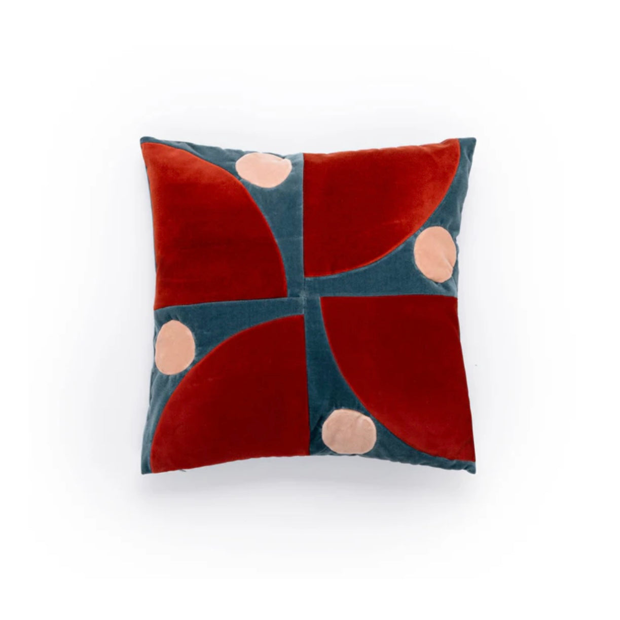 Kissen Samt "Windrad" mit Punkten blau / rot