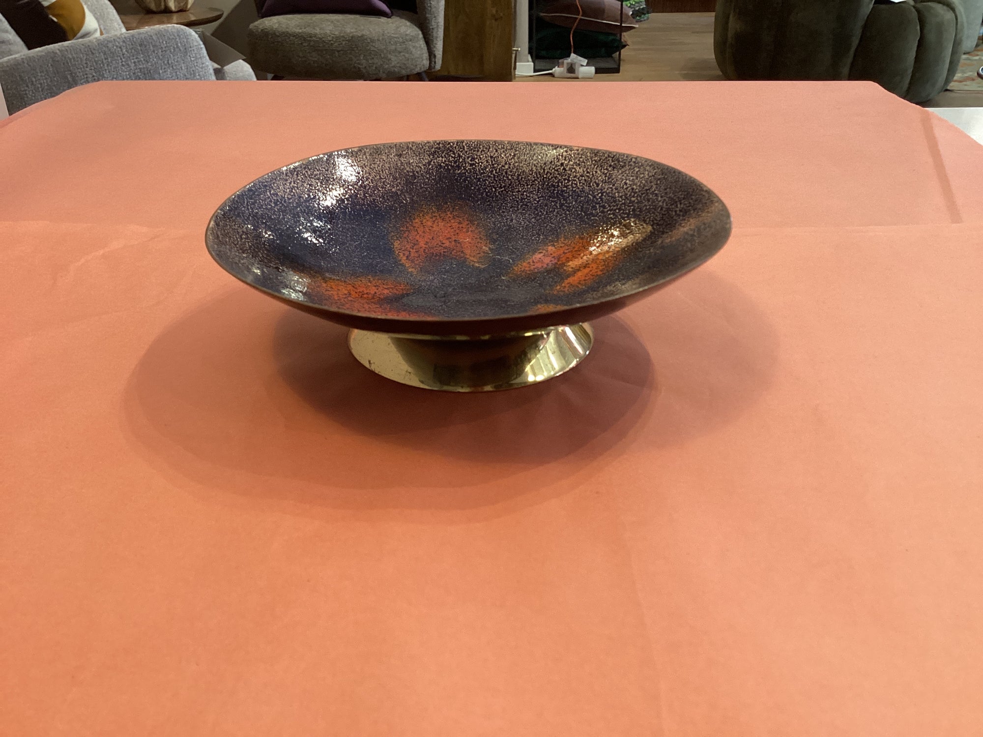 Messingschale mit Blume auf Fuß Vintage