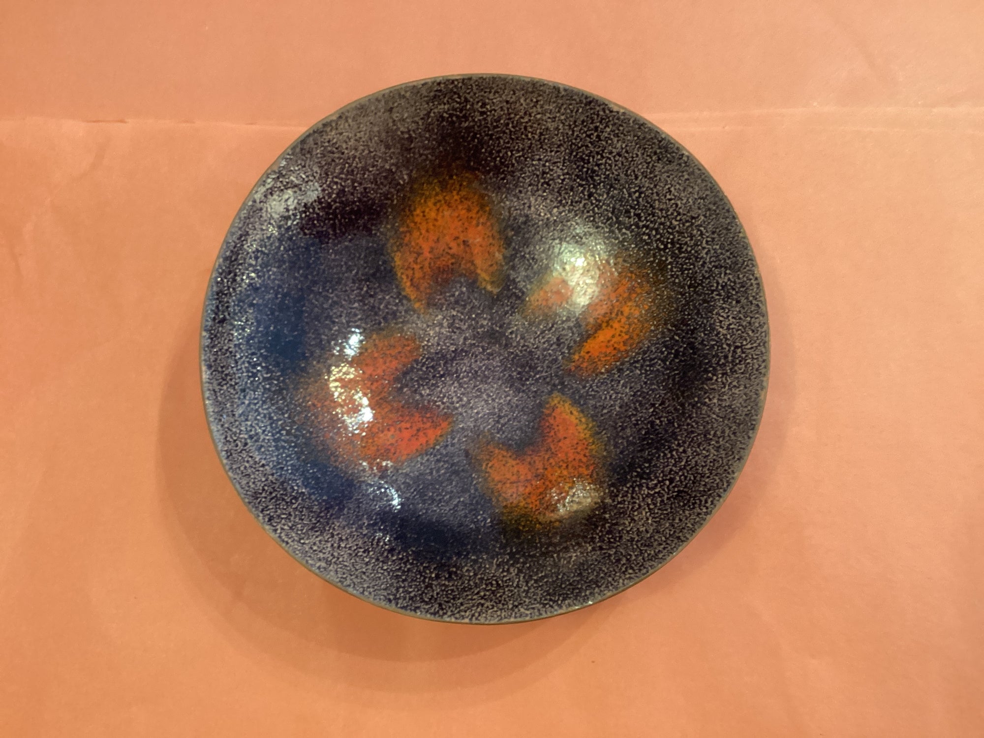 Schale mit Wellenrand weiss innen orange