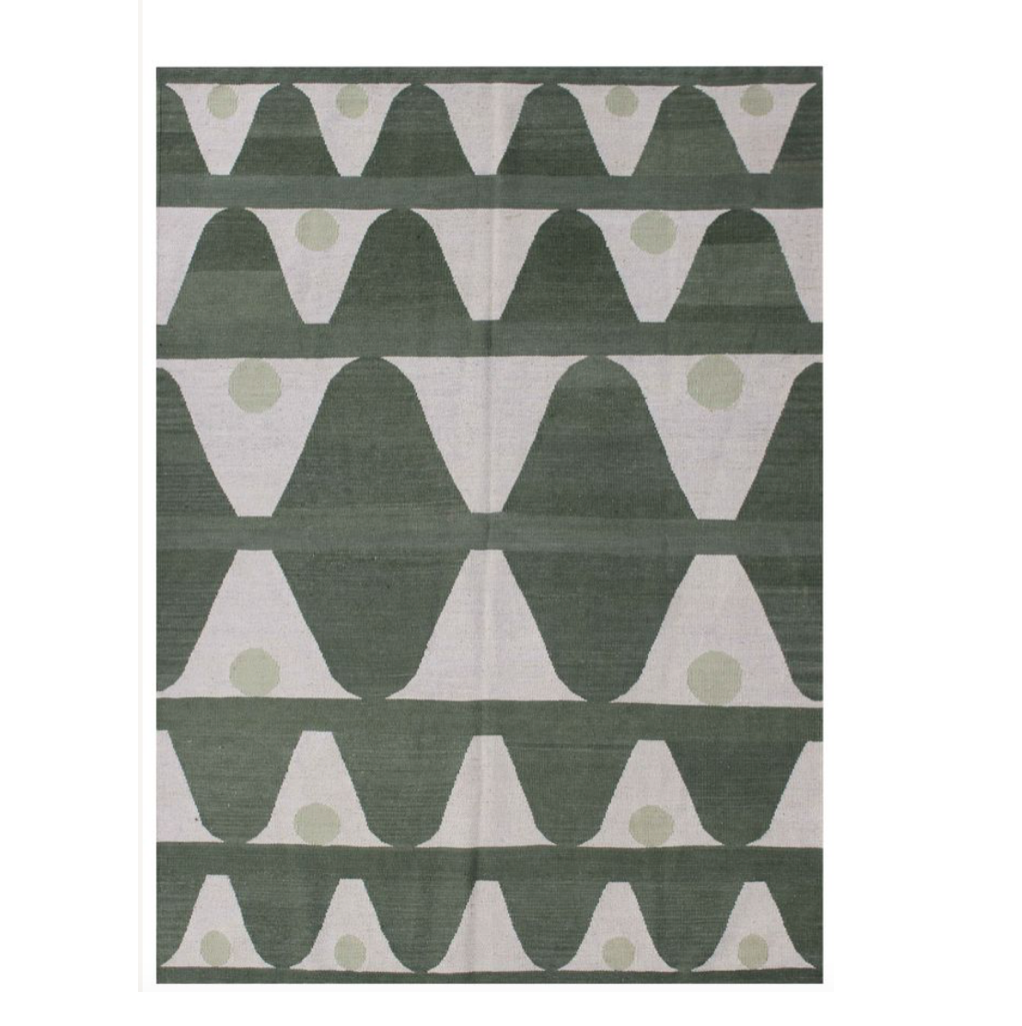 Teppich Kelim grün/ weiß mit Punkten , 145x200cm