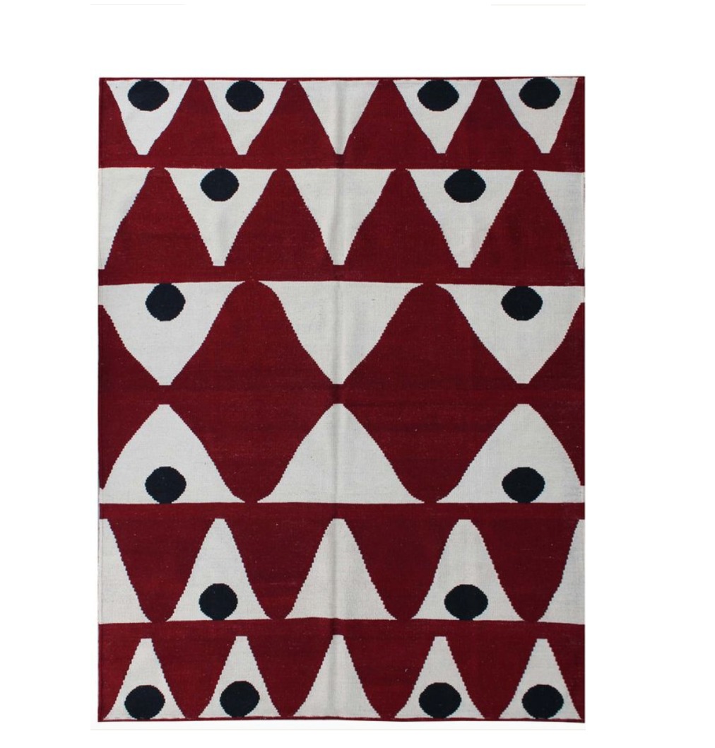 Teppich Kelim bordeaux/weiß mit schwarzen Punkten , 174x237cm