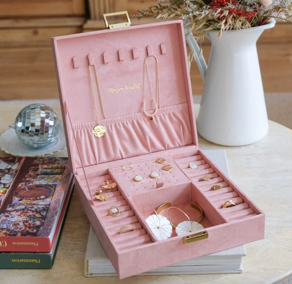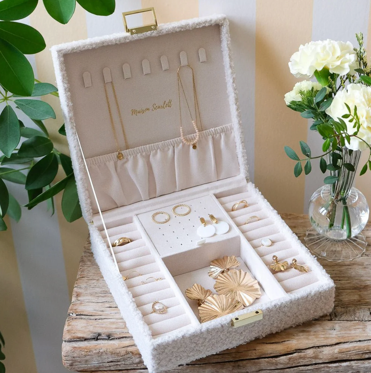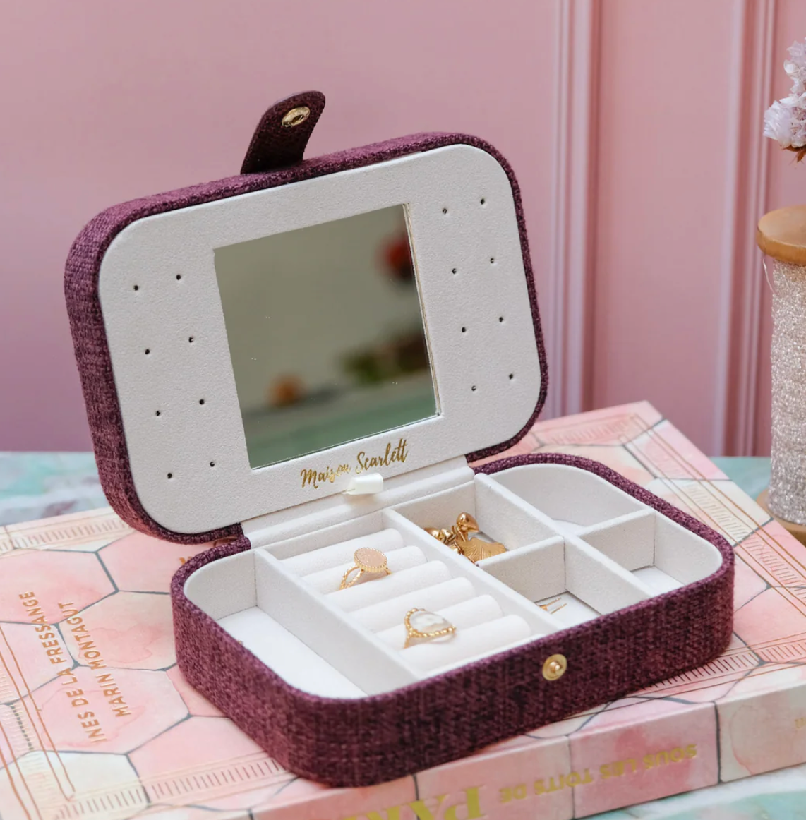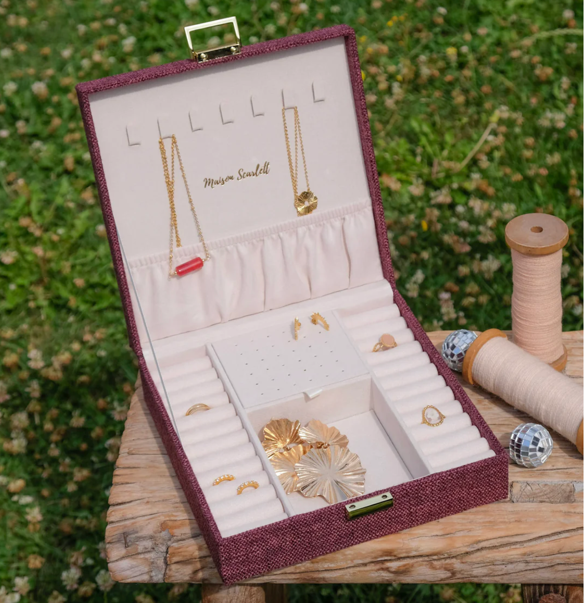 Schmuckbox mit Einteilung Leinen bordeaux M