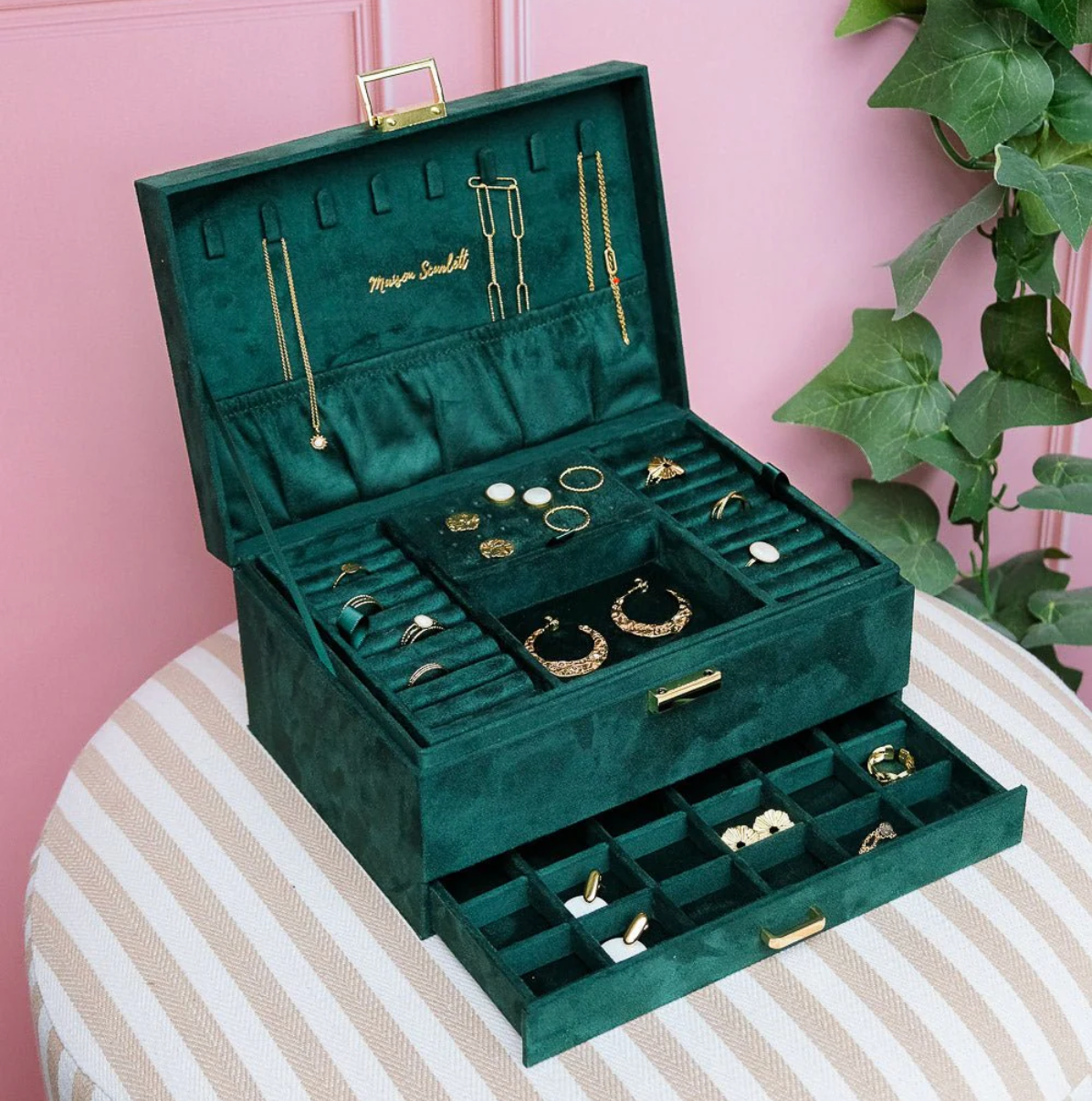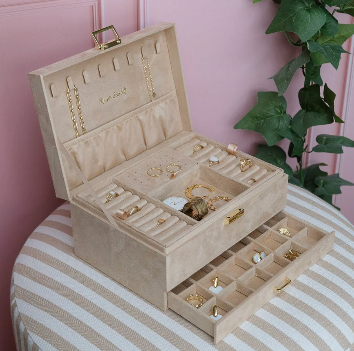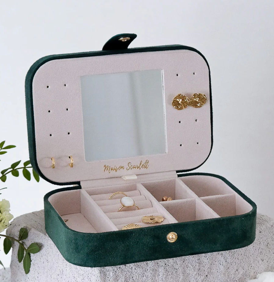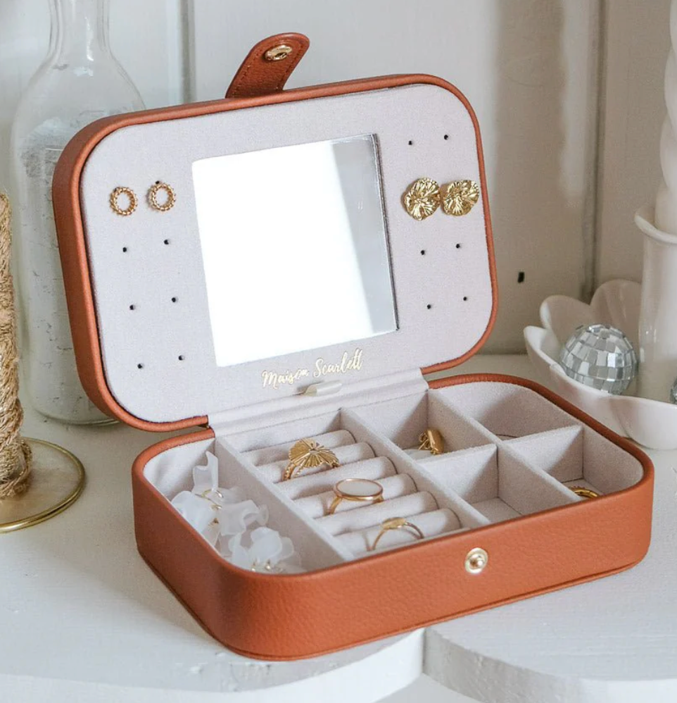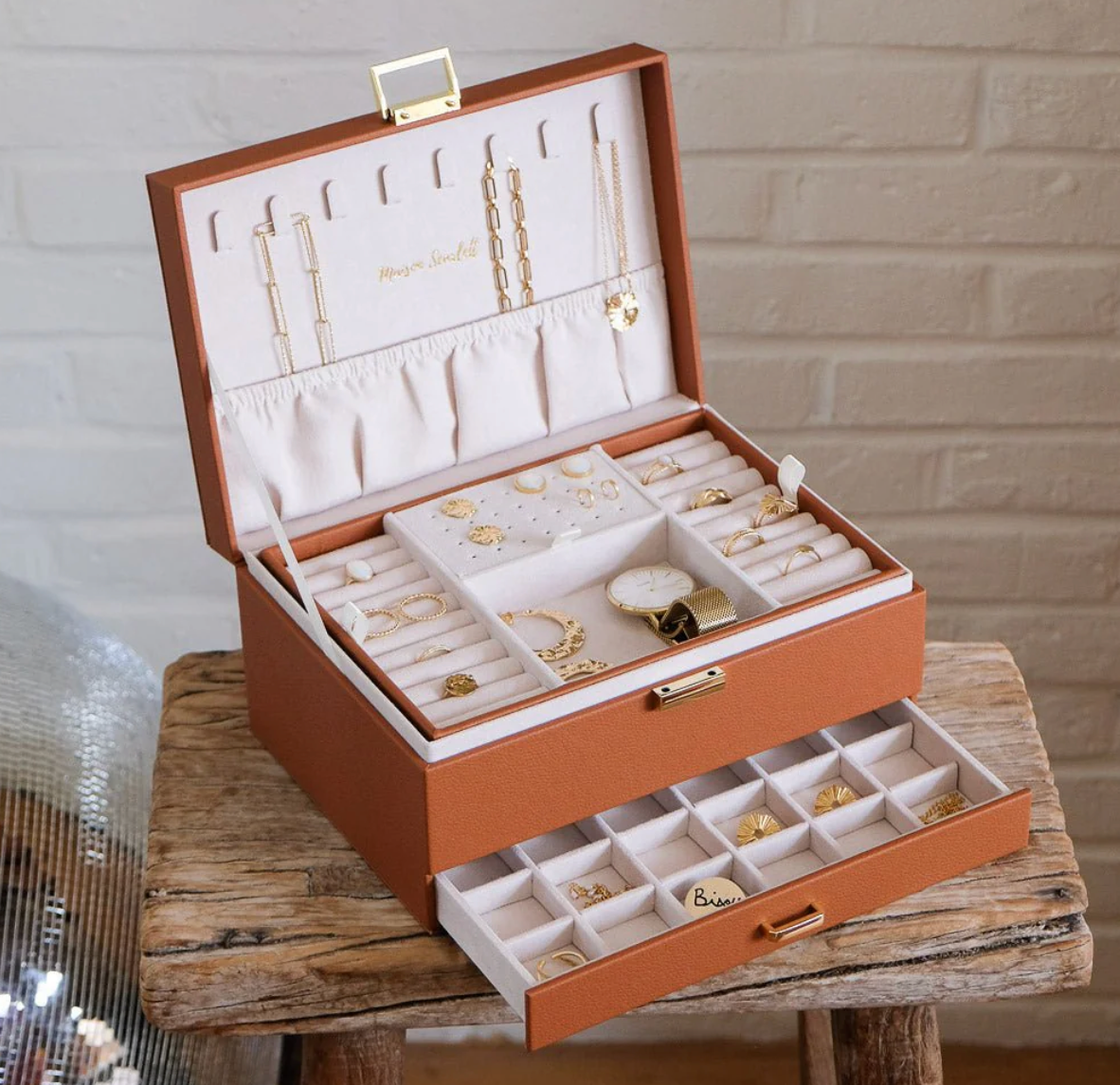 Schmuckbox mit Einteilung Leinen bordeaux M