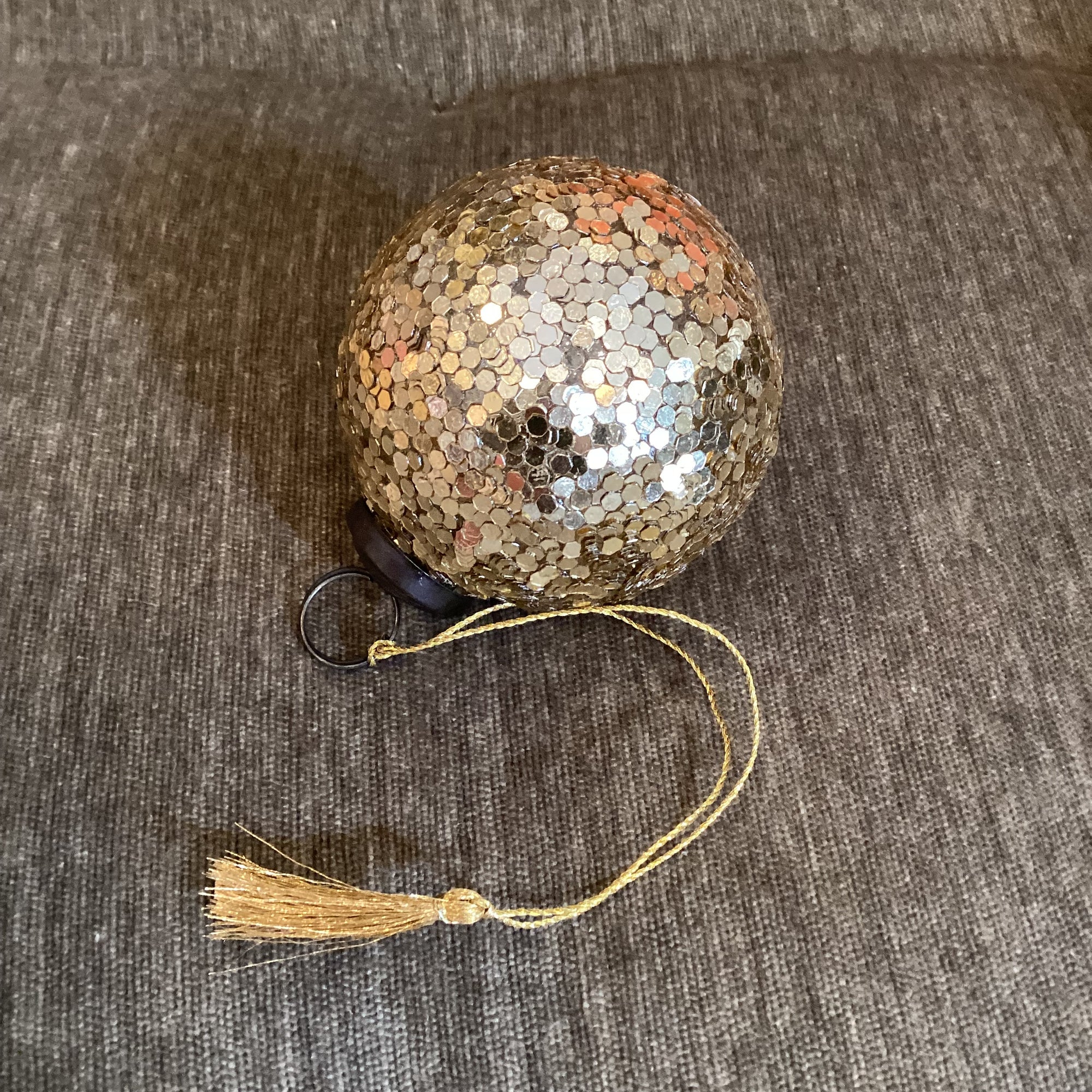 Christbaumkugel gold Glitzer mit Quaste